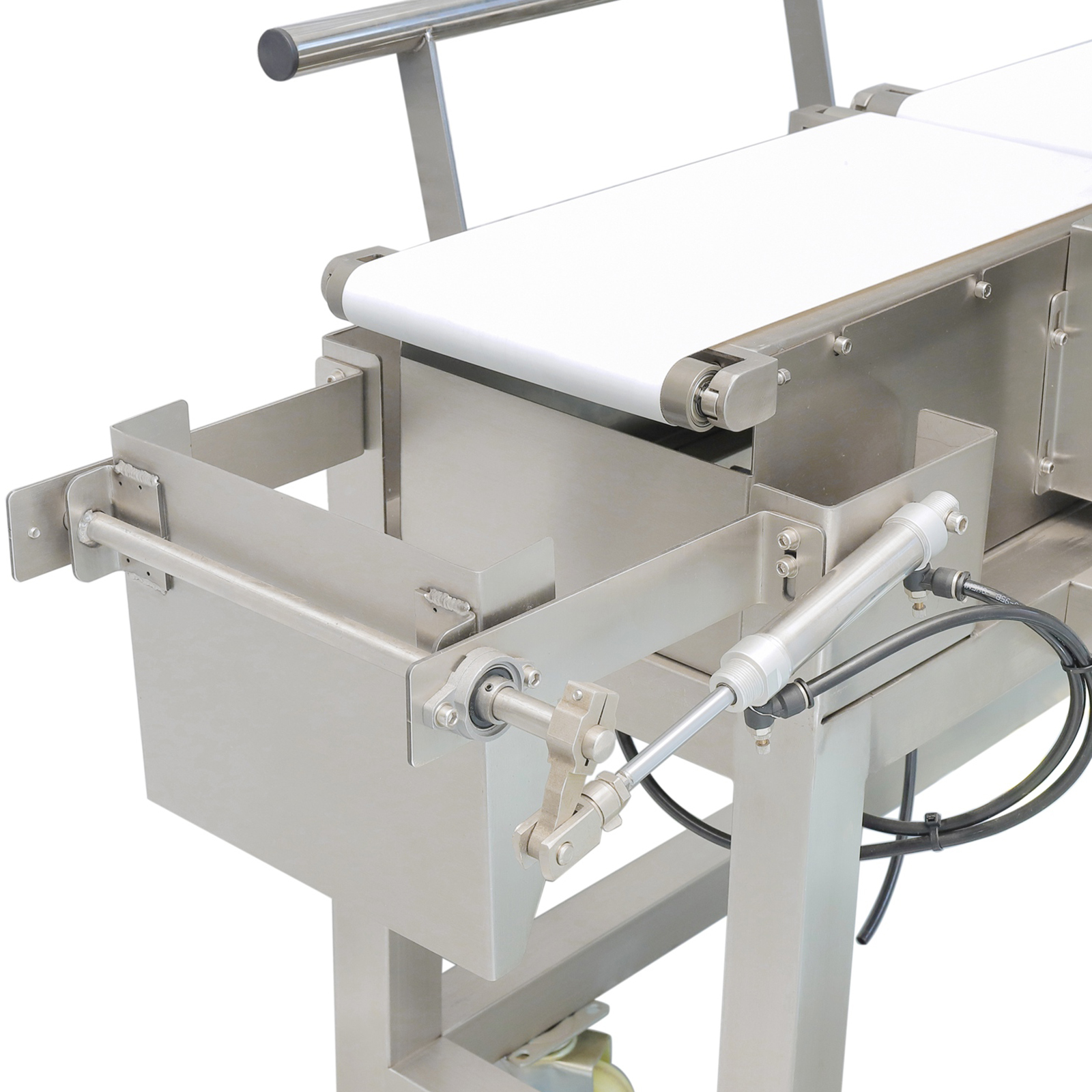 翻板式剔除方案采用上下摆动的翻板结构,通过翻板的角度变化快速改变产品输送路径,使不合格产品顺势落入剔除区域,合格品则沿原输送方向平稳前行。该方案动作敏捷,尤其适配散装、散料过的产品,能在高速检测下高效剔除不合格产品。